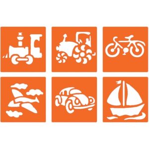 Paquet de 6 pochoirs en plastique, les transportsPaquet de 6 pochoirs en plastique, les…