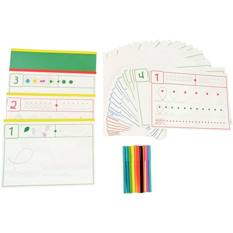 Ces exercices permettent à l’enfant de travailler sur les tracés élémentaires, d’acquérir les bases essentielles à l’apprentissage de l’écriture. Permet l’obtention d’une écriture fluide, claire, bien disposée dans la page et dans le lignage.