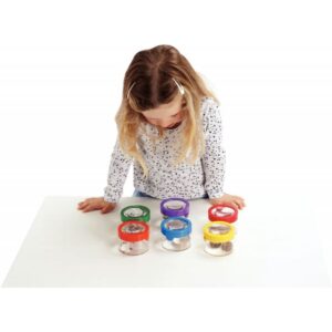 6 pots d’observation D.8cm avec un couvercle coloré.