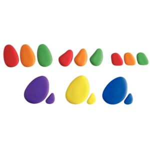 Contenu : 36 galets de 6 tailles et 6 couleurs assorties, 20 fiches d’activités recto verso.