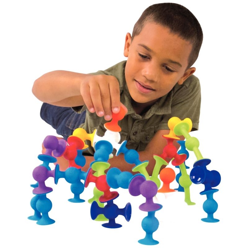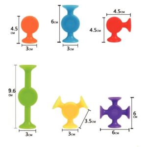 36 ventouses en silicone de 6 formes et de 6 couleurs assorties. Flexible et souple, les ventouses peuvent être assemblées dans une variété infinie de formes et structures.