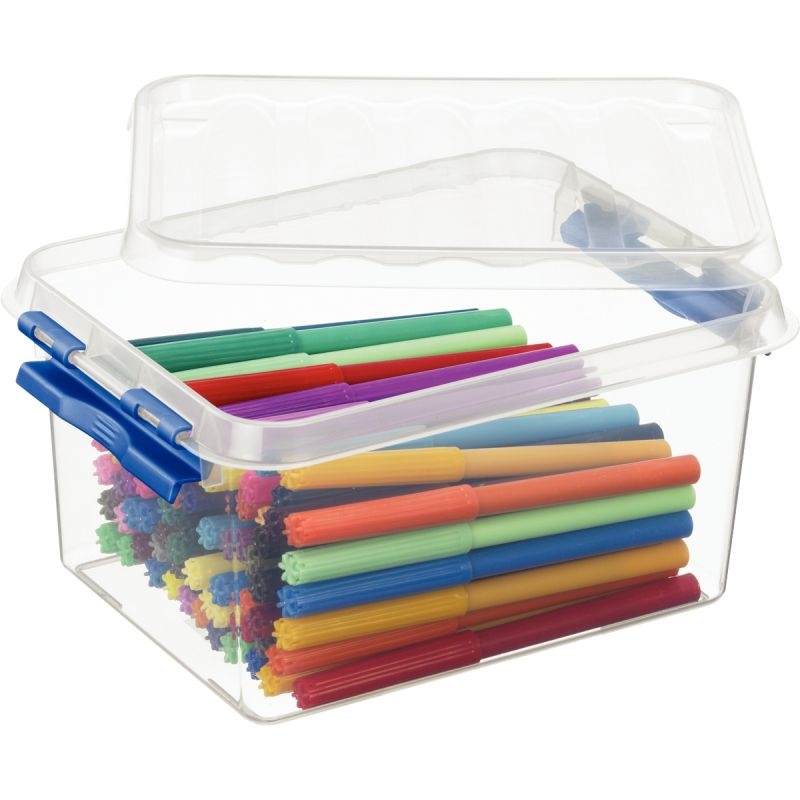 Pratique, facile à empiler et équipée de clips bleus de fermeture solides pour que le couvercle reste bien en place.