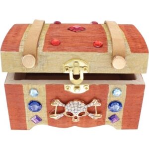 Coffre corsaire en bois. En bois brut à décorer. Finitions arrondies et dessinées pour un effet coffre aux trésors ! Fermoir doré. Dimensions (L x l x H): 11 x 8 x 7 cm.