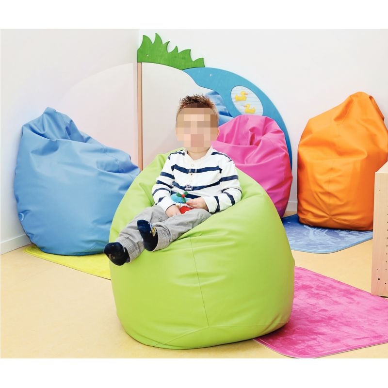 Rempli de microbilles en polystyrène et recouvert de PVC.