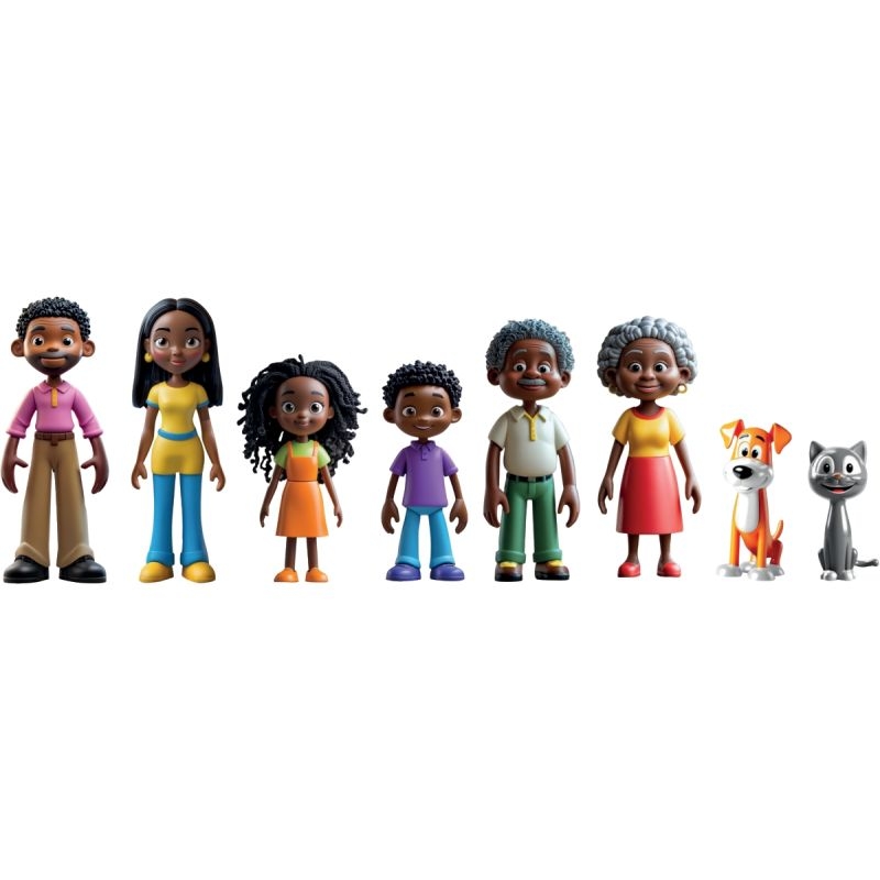 Famille africaine, 8 figurines