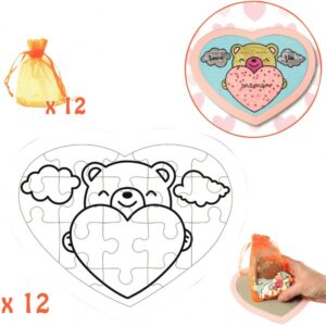Lot de 12 puzzles en forme de cœur, 18 pièces en carton blanc