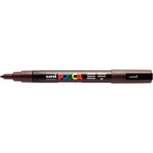 Marqueur pointe fine conique marron foncé. Les couleurs sont denses, opaques, couvrantes, superposables et ne pâlissent pas à la lumière. L’encre est inodore. S’applique sur tous supports : papier, bois, plastique, verre, métal… Peint, dessine, écrit et marque. Pour des applications illimitées !