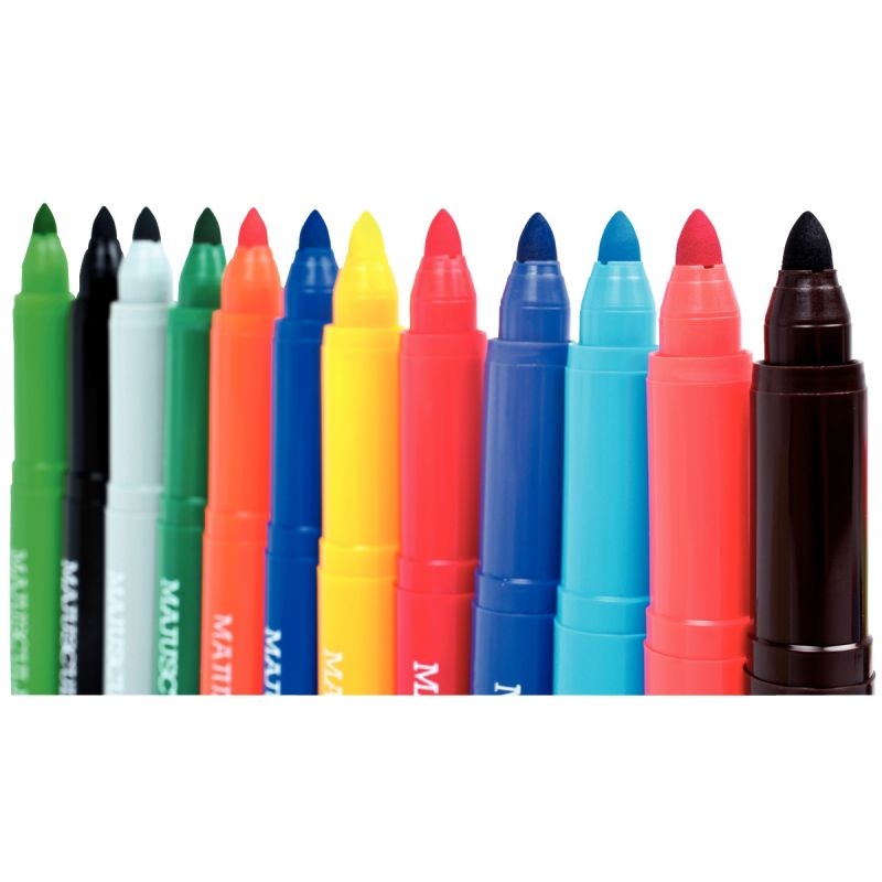 Pot de 36 maxi feutres pointe large couleurs assorties. Feutres Majuscule, encre lavable, capuchon ventilé.