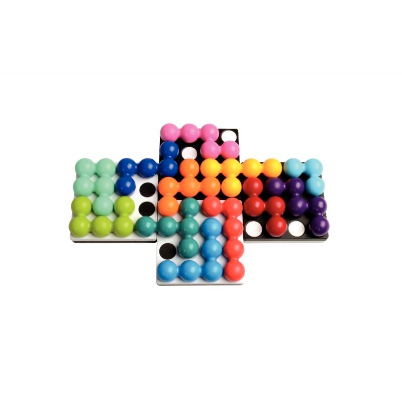 But du jeu : Après avoir choisi un défi, l’enfant doit placer les 12 pièces sur le plan de jeu sans recouvrir les points noirs ni blancs. Le jeu comporte 60 défis répartis sur 5 niveaux.
